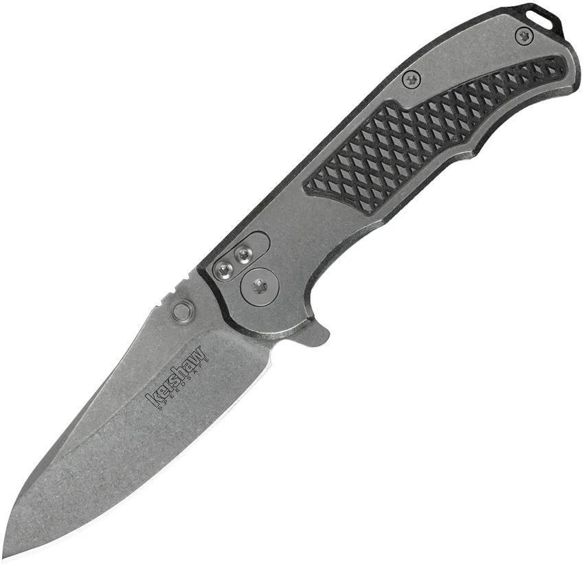 Assisted opening. 3.5″ closed. 2.75″ stonewash finish 8Cr13MoV stainless blade. Stonewash finish stainless handle. Extended tang. Thumb stud. Pocket clip. Lanyard hole. Includes three interchangeable backspacers, each outfitted with a different tool: a bottle opener, a screwdriver tip, and a lanyard attachment. Choose whichever tool is needed for your job and then attach it with a single hex screw. Designed by Rick Hinderer. Boxed.