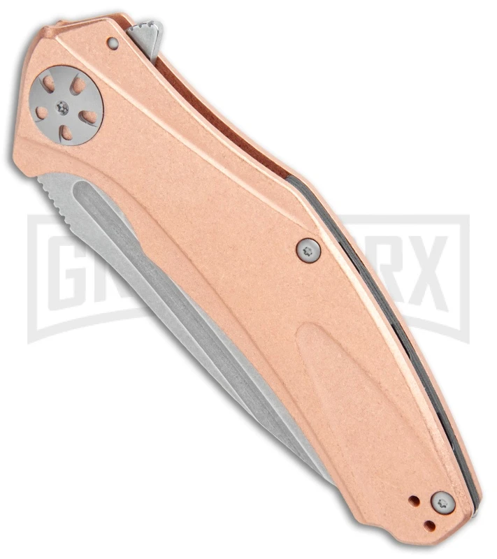If the Kershaw Natrix looks familiar you’re not experiencing deja-vu, it’s based on the popular Zero Tolerance 0770. Kershaw wanted to bring this coveted design to a wider audience with an affordable model designed for everyday carry and use. The drop point blade made from D2 steel is the perfect complement to the copper handle scale that has been 3D machined and chamfered to fit perfectly in the hand. The sub-frame lock design provides secure blade lock up while reducing weight for ease of carry. A custom designed deep-carry pocket clip finishes off the ZT inspired design.