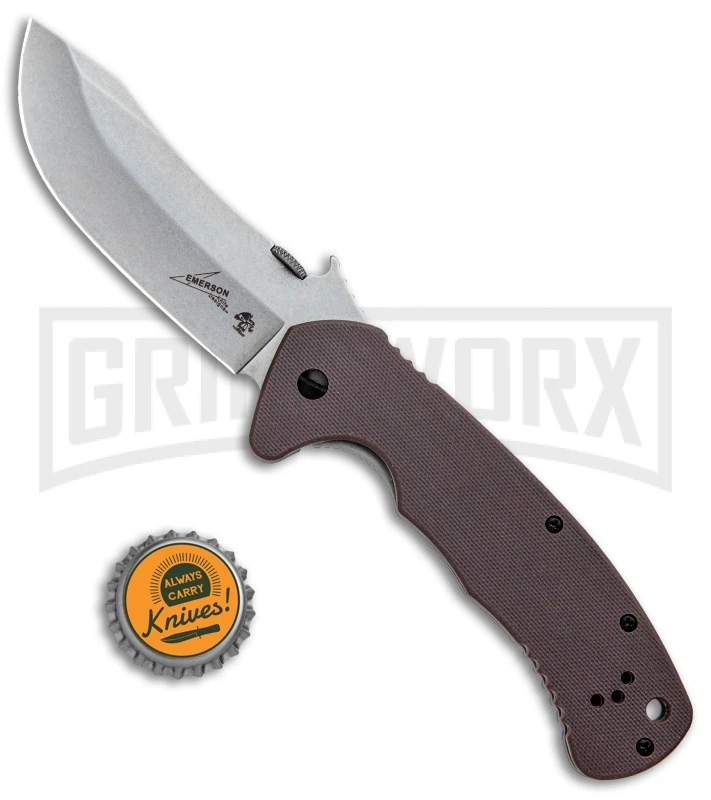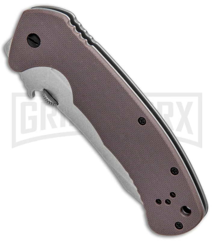 This Kershaw CQC-11k model comes equipped with a brown G-10 handle and a stonewashed blade. The CQC-11k is now available with a tough D2 steel blade. The ever-popular Kershaw Emerson series continues to grow with this latest model based on the Emerson Rendezvous. This well rounded knife was originally designed as a hunting knife, but also excels as a camping, survival or general EDC knife. The unique blade shape provides an ample belly for game processing, and added slicing power. Grippy G-10 scales rest over a sturdy frame lock mechanism that offers undeniable lock up strength. Emerson’s coveted wave-opener rounds out this versatile edition to the Kershaw Emerson series.