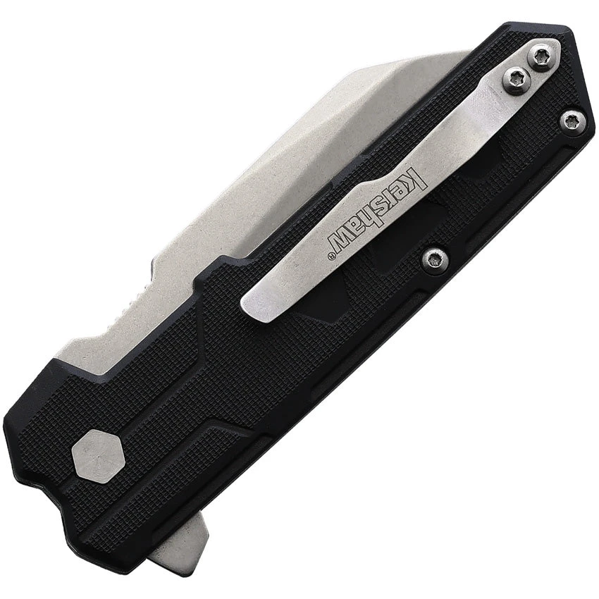 Assisted opening. 4” closed. 3” Stonewashed finish 8Cr13MoV sheepsfoot blade. Black GFN handle. Linerlock. Reversible pocket clip. Boxed.