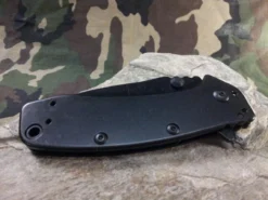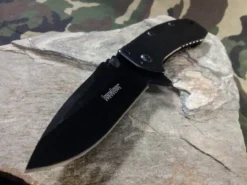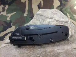 Framelock. 4 3/8″ closed. Black finish 8Cr13MoV stainless blade with dual thumb studs, thumb ramp and extended tang. Features Speed-Safe torsion bar mechanism for assisted opening. Black finish stainless handles with lanyard hole. Reversible stainless pocket clip. Designed by Rick Hinderer. Comes boxed.