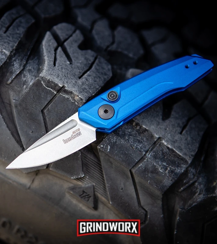 Kershaw Launch 1 Blue Aluminum Automatic Knife – Blackwash Plain