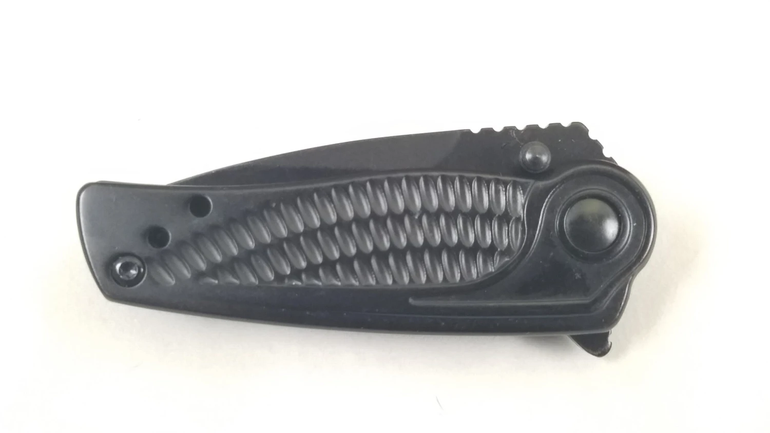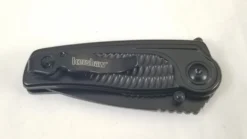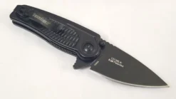 Assisted opening. 2.88″ closed. 2″ black finish stainless blade. Black stainless handle. Pocket clip. Extended tang. Thumb stud. Boxed.